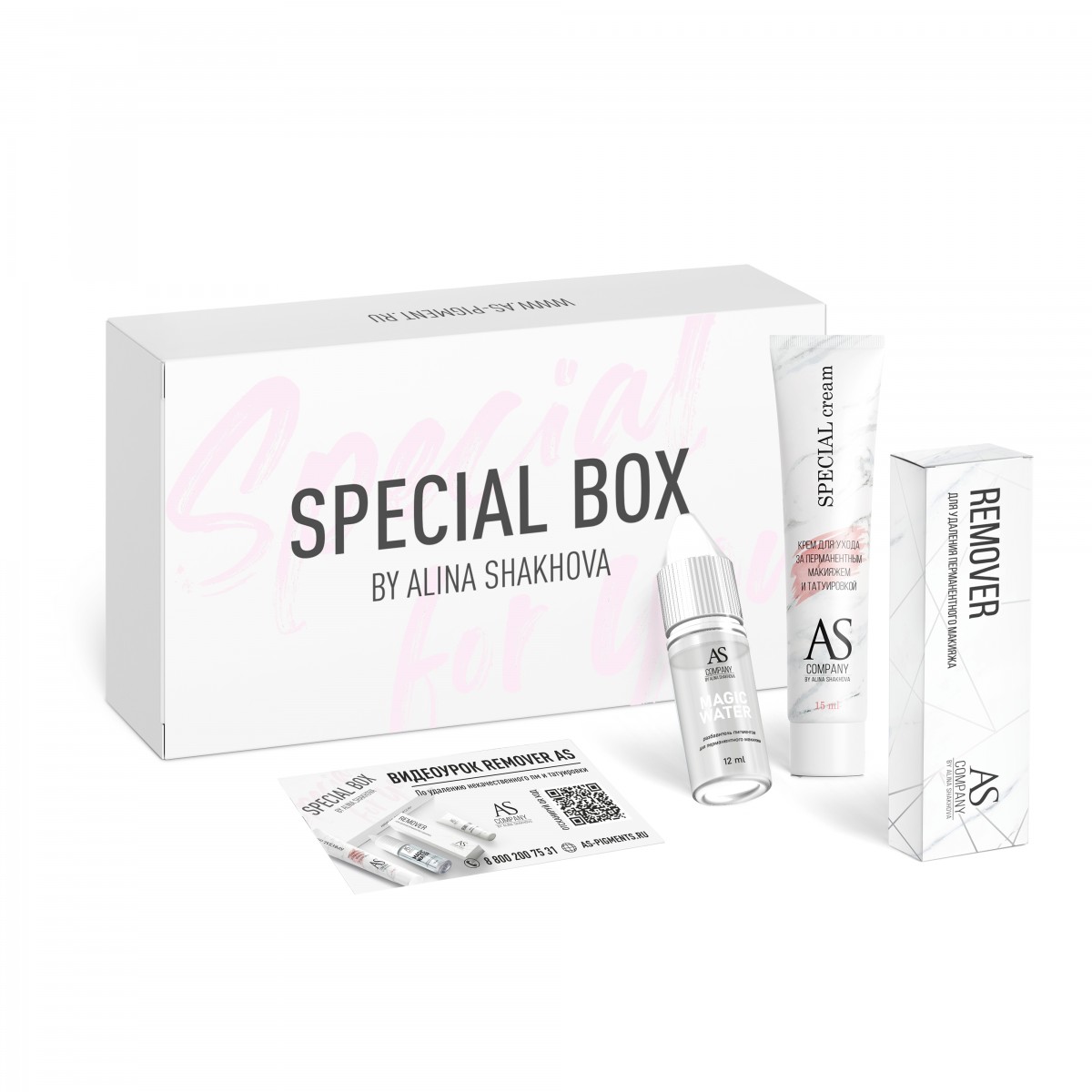 Setul SPECIAL BOX AS COMPANY este un ajutor indispensabil pentru profesioniștii din domeniul machiajului permanent și al tatuajelor, oferind îngrijire de calitate și soluții eficiente pentru îndepărtarea pigmenților.